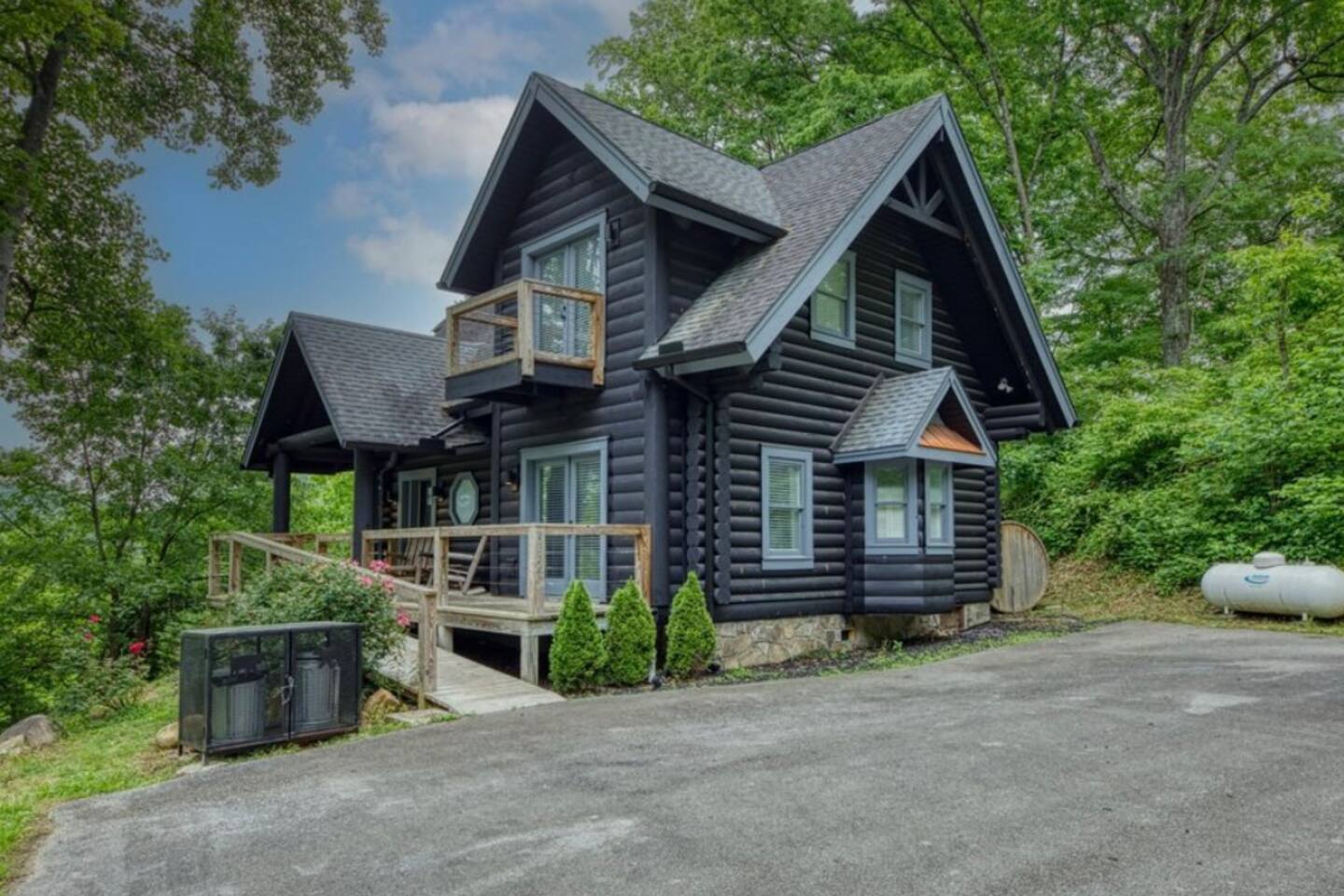 Enjoy a peaceful escape and mountain air at our serene 3-bedroom cabin. This cabin provides easy access to local attractions and the perfect place for families seeking a getaway. Relax in the hot tub or sauna or head indoors and enjoy the pool table, arcade games and more.